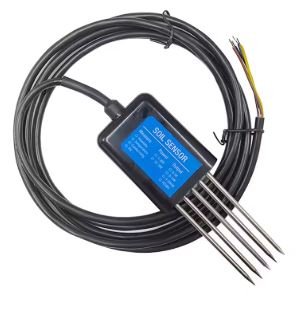 Capteur de sol tout-en-un (température, humidité, conductivité) IP68, alimentation 4,5–30 V DC, mesure de –40 °C à +80 °C, câble 2 m.