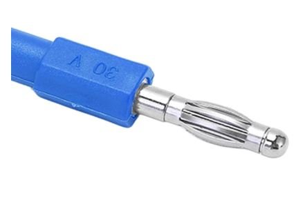 Adaptateur banana mâle 4 mm à socket femelle 2 mm, isolant PVC Bleu.